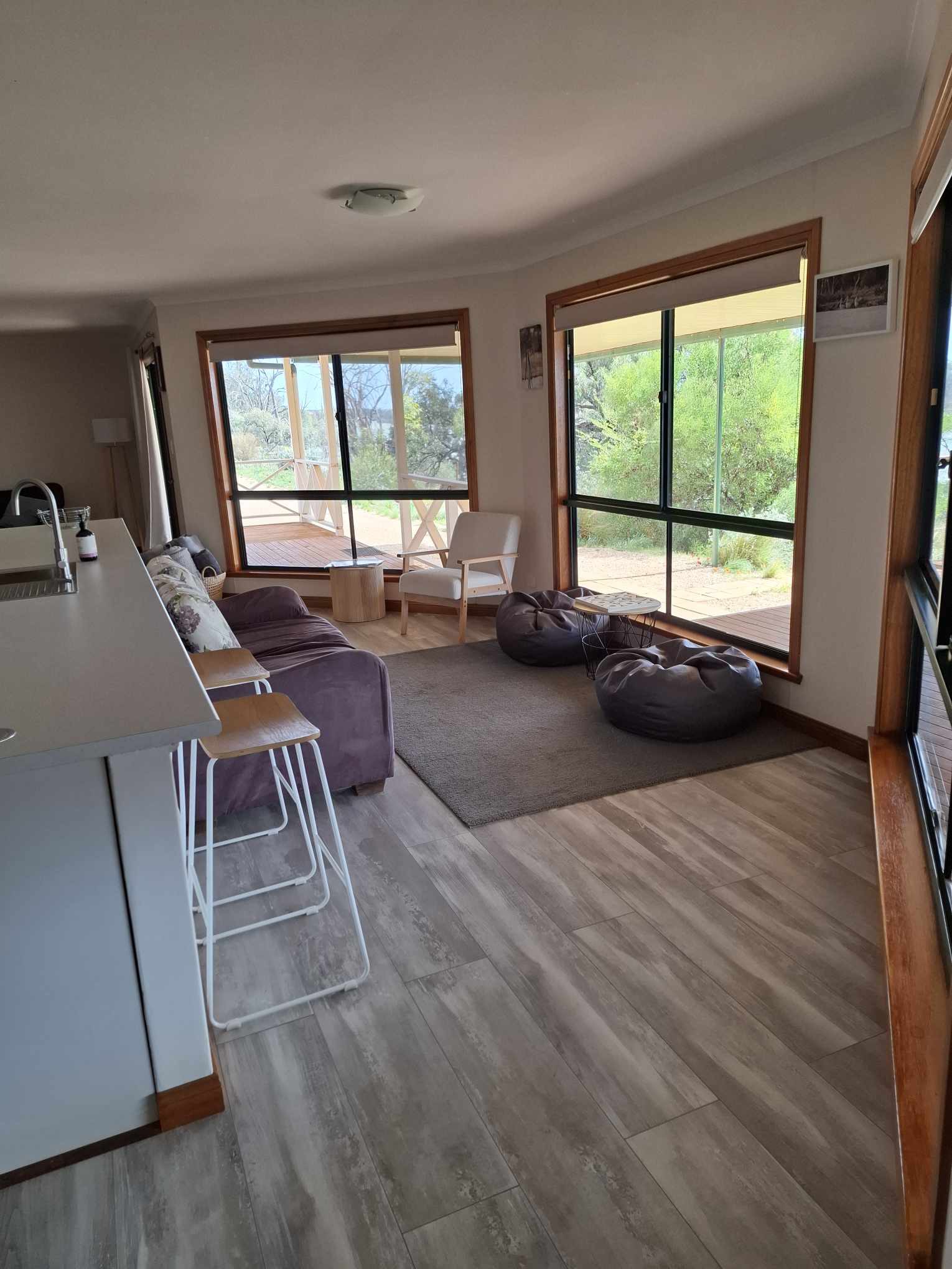 Offering accommodation for up to 10 adults and its 180 square metres of internal living space coupled with large covered decking have provided visitors with an iconic accommodation setting. We have been pleased to welcome an ever increasing number of guests to the Woolshed and we invite you to experience a small piece of the Riverland’s history.